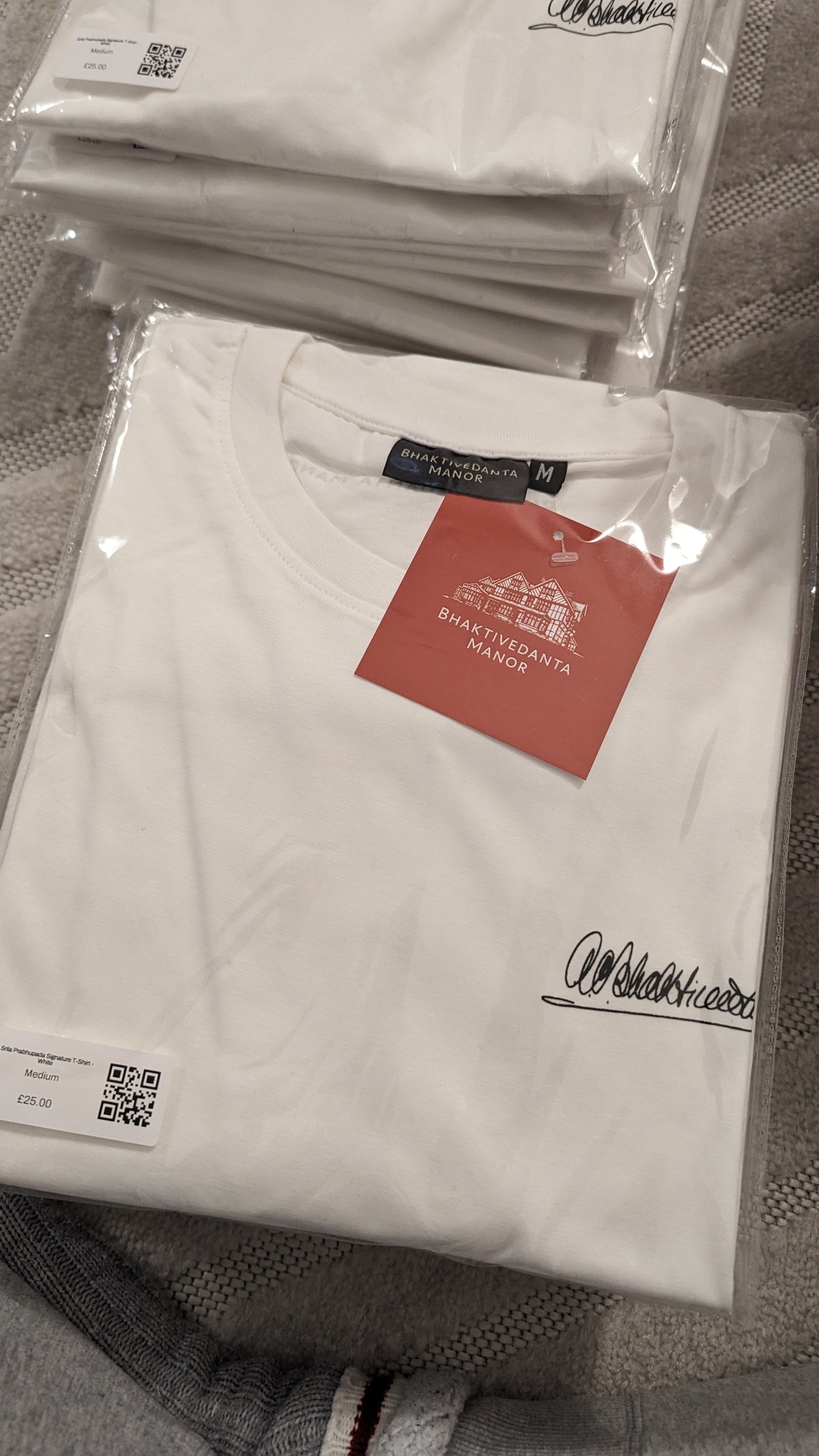 Bhaktivedanta Manor Branded t-shirt with Srila Prabhupada Signature.