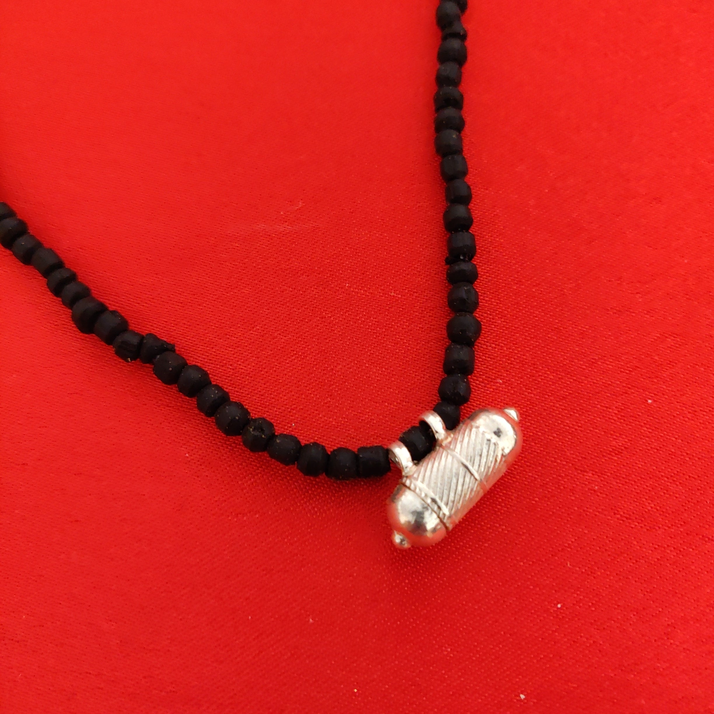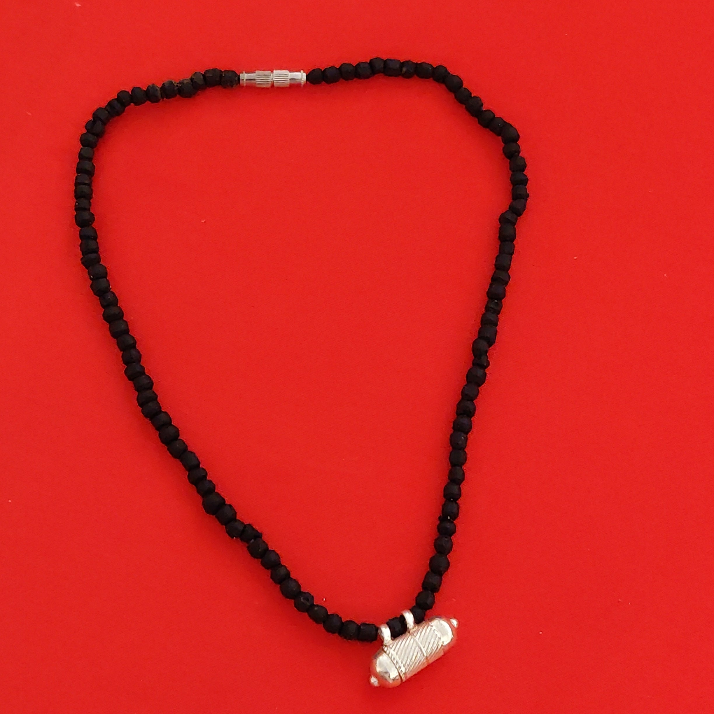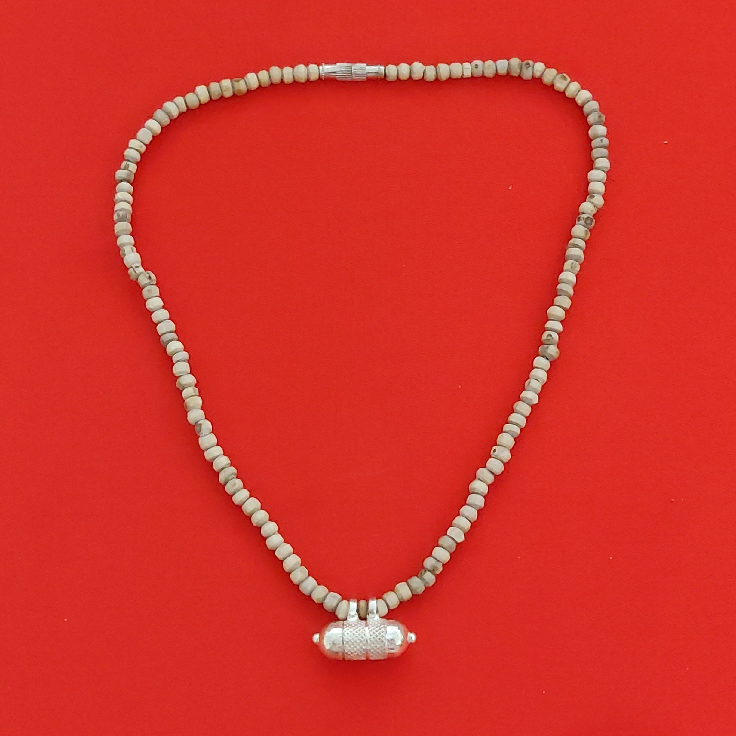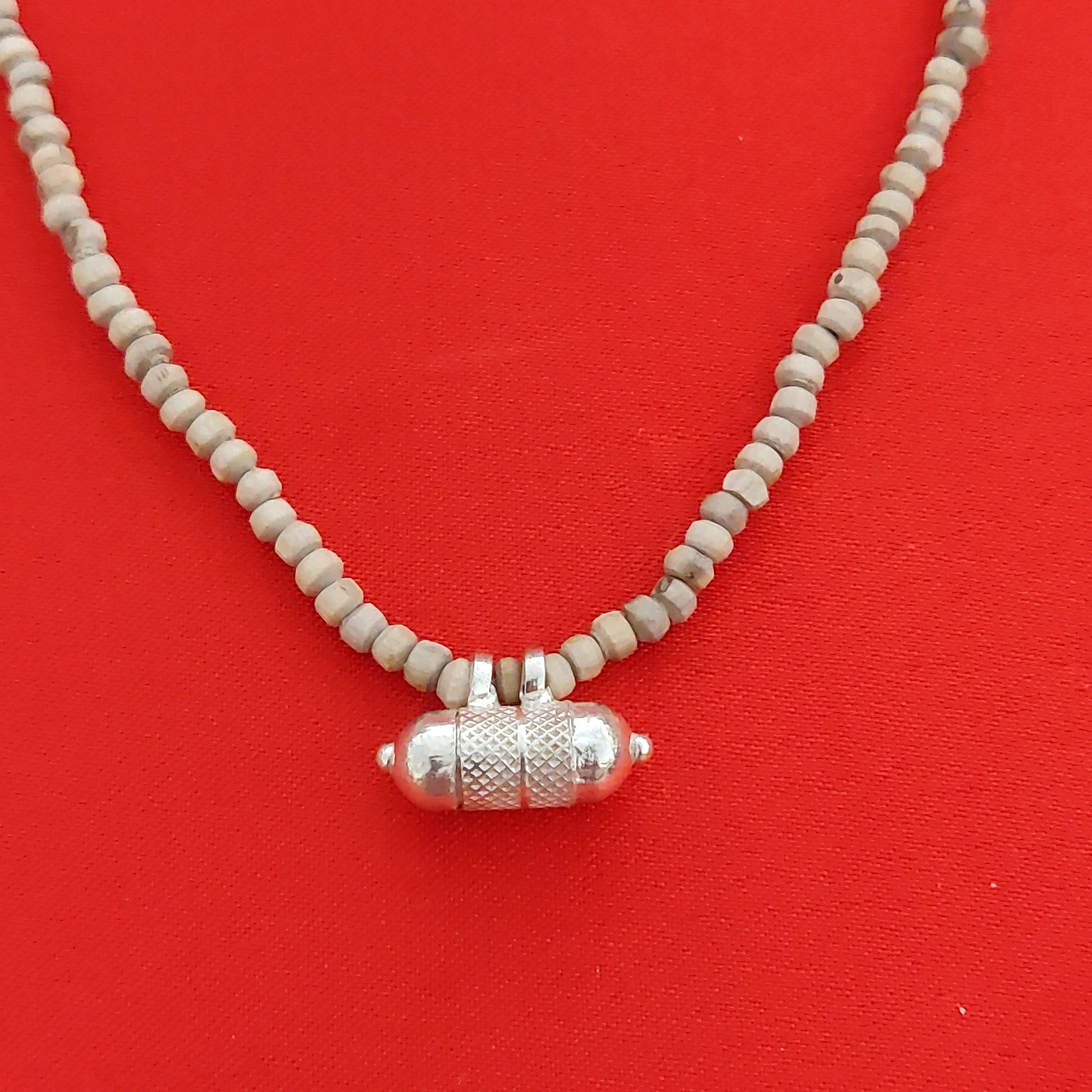Pure Silver Tulasi Neck beads(Natural/Black Tulasi beads) with a Narshima kavach filled with Tulasi leaves, Vrindavan dust and Narshima yantra.